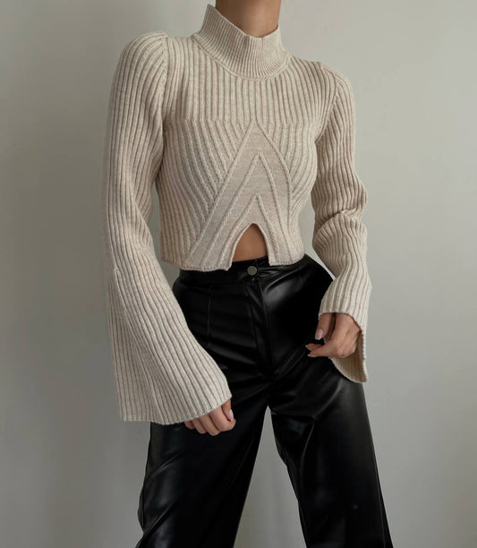 Beige Wool turtleneck Top