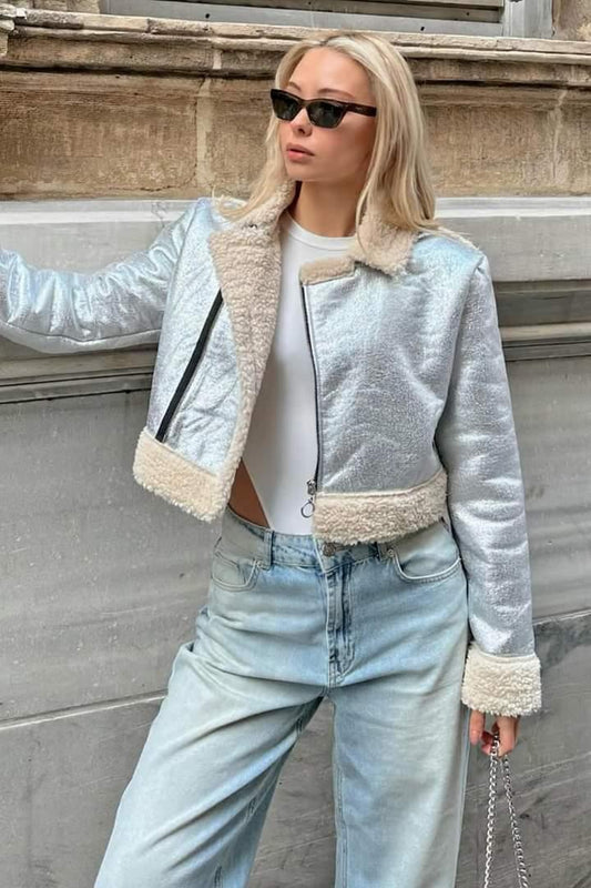 SaleMetallic Fur Jacket