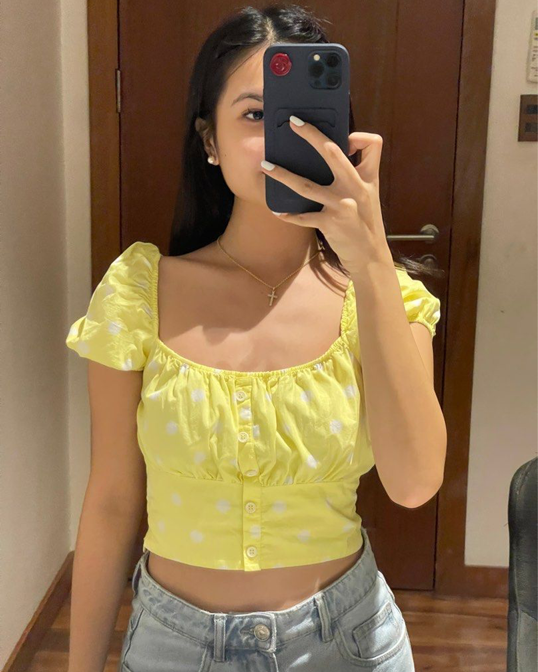 Indulge in the art of fashion with Zara's vibrant yellow crop top. Made with luxurious materials, this exclusive piece adds a touch of elegance to any outfit. Perfect for a stylish day out, this Zara crop is a must-have for any fashion-forward wardrobe.